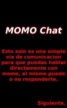 Chat directly with momo, in a group chat that anyone can enter. Momo can answer or not, it depends if he is in a good mood. When you exit the application, all the chats will disappear.