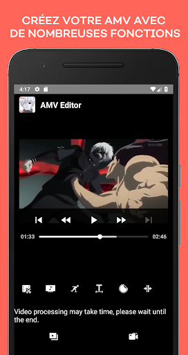 Remarque: Cette application n'est qu'un outil. Ce n'est pas une application officielle. Vous ne pouvez pas télécharger de vidéo ou de musique via cette application. Vous ne pouvez modifier que l'amv qui se trouve sur votre téléphone.