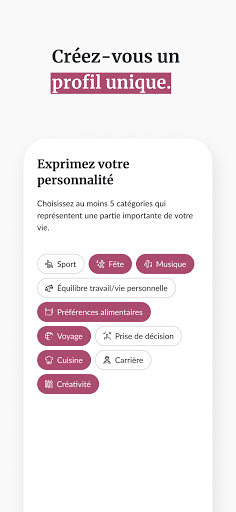 En utilisant vos traits de personnalités, nous vous matchons avec d'autres utilisateurs qui partagent vos centres d'intérêts et avec qui vous vous sentirez tout de suite connectés.