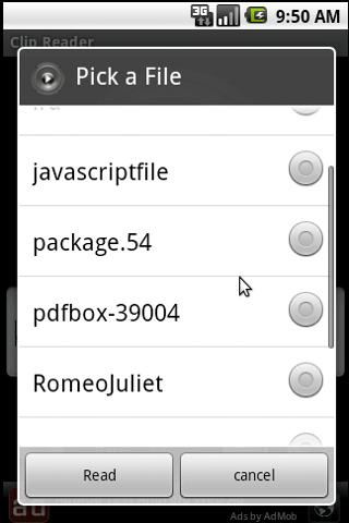 Click the folder icon on the home page, a list of files that can be read will be displayed.
