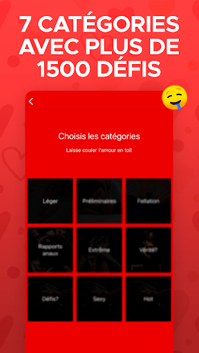 Vous en voulez plus ? Téléchargez l'application et rendez votre expérience unique et plus passionnante, en créant vos propres catégories et vos défis personnalisés ! L'amusement et le plaisir sont maintenant entre vos mains ! 😉 .