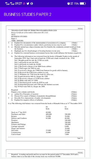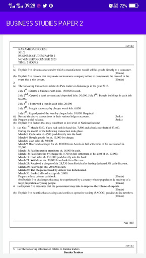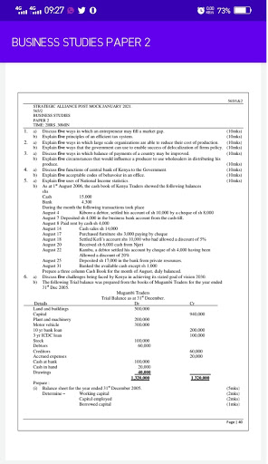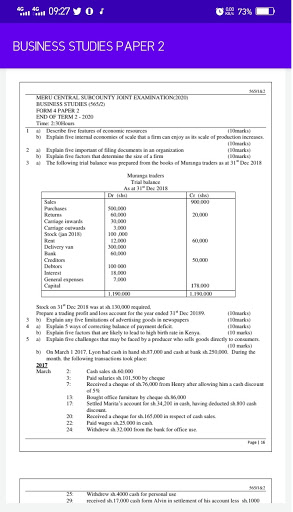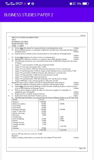 The application features Business studies paper two questions and answers