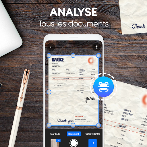 Téléchargez le meilleur scanner de documents mobile gratuit pour convertir des photos et des documents en fichiers PDF et JPEG où que vous soyez. Grâce à la technologie OCR, vous pouvez facilement créer des cartes d'identité, des cartes de visite et des reçus professionnels. Numérisez des photos au format PDF ou JPEG de haute qualité et partagez-les plus facilement que jamais.