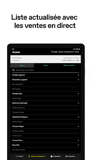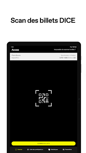 DICE Access permet aux organisateurs de gérer facilement leurs événements. Scannez les participants à leur entrée et mettez votre liste de participants à jour en temps réel. L’appli fonctionne sous n’importe quelle luminosité, et dispose aussi d’un mode hors ligne pour effectuer des validations manuelles si vous n’avez pas d’accès à internet.