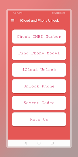 iCloud and Phone Unlock est une application Android qui aident l'utilisateur à vérifier le numéro IMEI et le modèle téléphonique. Cette application aide également déverrouiller votre téléphone (Samsung, iPhone ...) via imei pour le prix le plus bas.