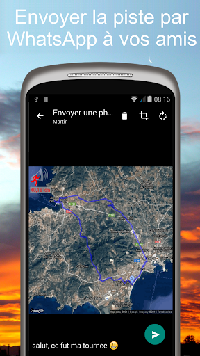 ★ Une fois l'itinéraire terminé, vous pouvez l'envoyer sous forme de photo via WhatsApp ou l'envoyer à un ami par e-mail.