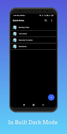 Notes rapides est le bloc-notes gratuit des annonces.Il est livré avec très lite et une mise en page simple.Il a également un mode sombre (mode nuit) pour fournir une expérience sans tracas dans les nuits également.Il est fait que mon Pragnetam Kumar de fournir une meilleure expérience possible à ses utilisateurs.