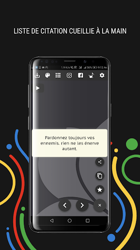 Les différentes citations de l'application couvrent les citations Attitude, les citations de bonheur, les citations positives, les citations de confiance, les citations zen, les citations journalières, les citations sarcastiques, les citations de photos, les citations de fidélité, les citations d'Osho, etc.