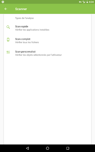•Le scan rapide ou le scan complet du système ainsi que l'analyse de fichiers et dossiers en particulier.