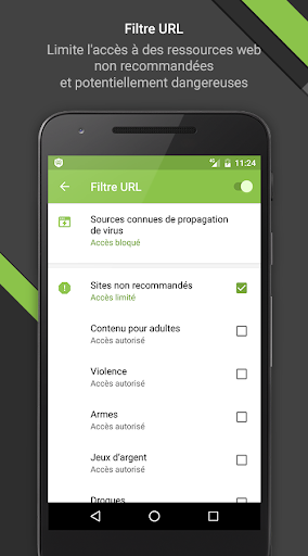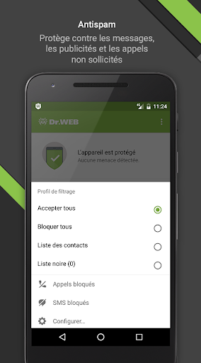 Protection complète contre tous les types de menaces ciblant les mobiles sous Android OS 4.4 — 11.0, ainsi que la protection pour les téléviseurs, lecteurs multimédias et les consoles de jeux sur la plateforme Android TV 5.0 avec un support " a vie ".