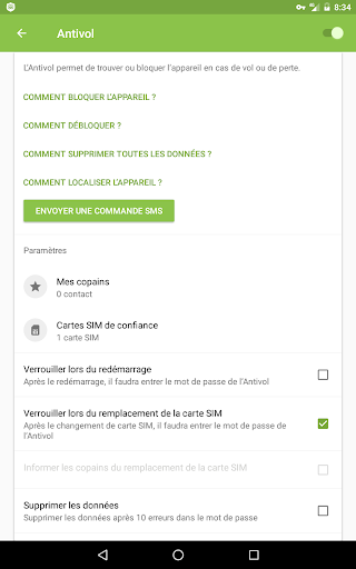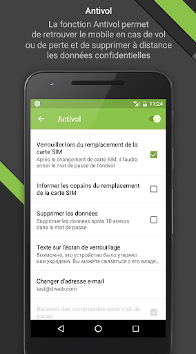 • La fonction Antivol offre une possibilité de retrouver le mobile en cas de vol ou de perte et de supprimer à distance les données confidentielles.