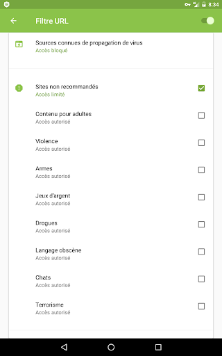 • Le blocage supplémentaire par catégories (drogue, violence, etc.).