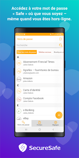 • Gestionnaire de mot de passe : Avec la version gratuite de SecureSafe, vous pouvez stocker jusqu'à 50 mots de passe. Il suffit d'utiliser le générateur de mot de passe intégré pour vous aider à créer des mots de passe forts.