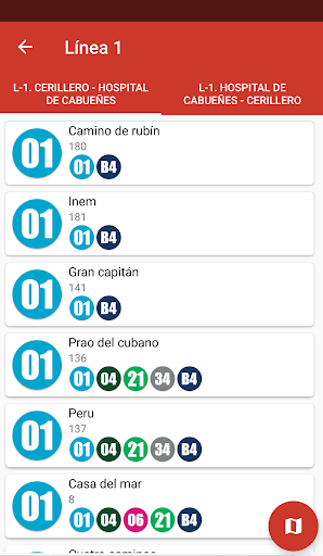 -Listado de lignes disponibles. En temps réel de chaque arrêt.