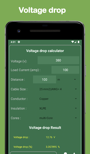 - Chute de tension pour les câbles LV monoconducteurs (cuivre).