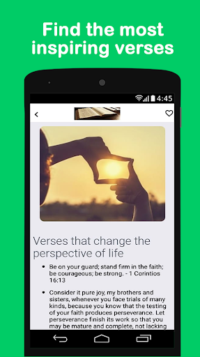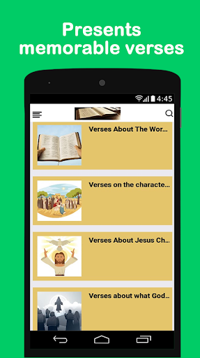 L'application de mémoire Bible présente les versets les plus mémorables de la Bible, ce qui est composé d'un ensemble de livres canoniques, qui reflètent la relation entre Dieu et l'homme et que, à l'époque du judaïsme et du christianisme, était considérée comme une inspiration divine