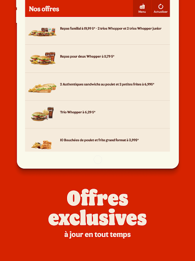Commandez sur l’appli, obtenez des offres mobiles exclusives, restez à l’affût et beaucoup plus encore grâce à l’appli BURGER KING® officielle!