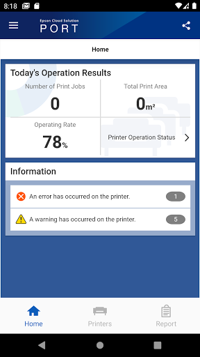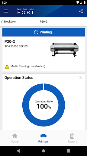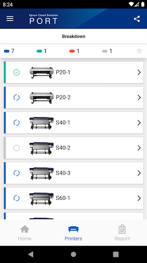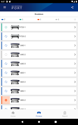 Epson Cloud Solution PORT pour mobile vous permet de connaître l'état des imprimantes du site de production sur un smartphone ou une tablette à tout moment et en tout lieu en vous connectant à une plate-forme sécurisée fondée sur le nuage.