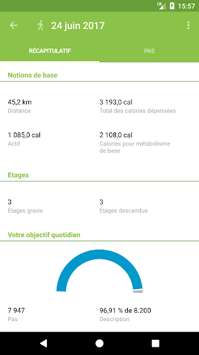 - Liste des étapes quotidiennes avec vue détaillée