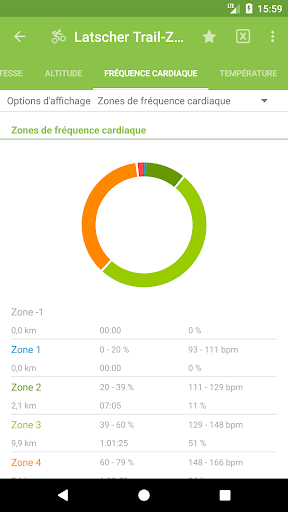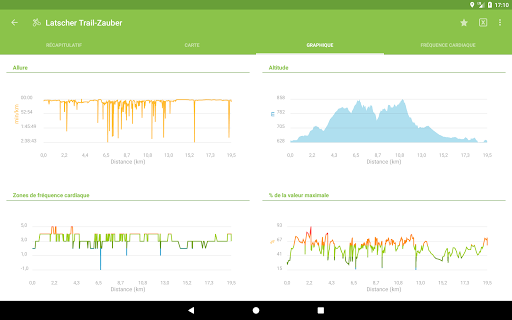 - Différents graphiques à propos de la vitesse, de la fréquence cardiaque, de l'altitude, etc.