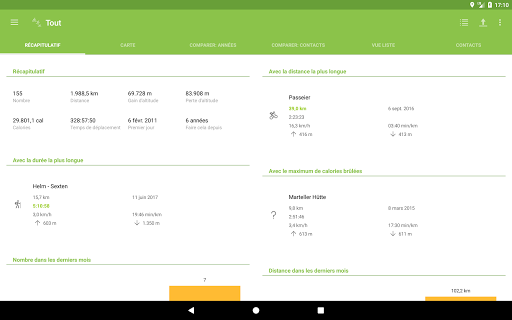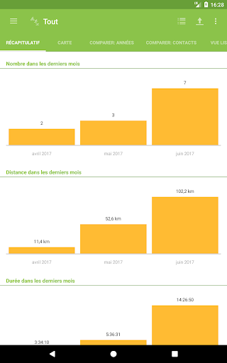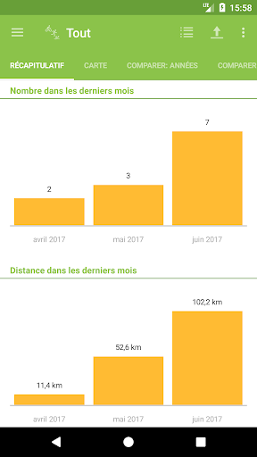 - Comparaison du nombre, de la durée, de la distance du mois en cours avec les derniers mois (aussi avec la semaine en cours)