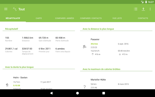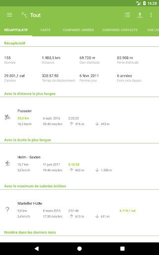 - Affichage des activités avec la plus longue distance, la durée et avec la plus forte consommation de calories
