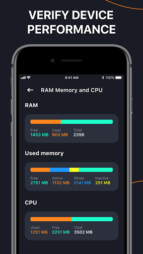 AccèsLes informations les plus réelles sur votre téléphone, comme l'état de la RAM et de la vie de la batterie disponibles et gèrent également votre statut de stockage