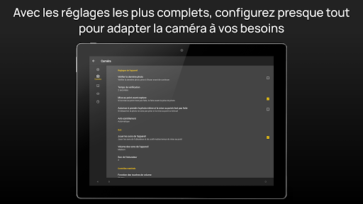 ● Nombreuses fonctions de l'appareil photo attribuables aux touches de volume (obturateur, mise au point, compensation d'exposition, zoom, appareil suivant ou précédent, balance des blancs...).