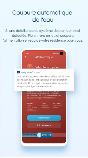 • Sécurisez votre résidence même lorsque vous êtes en vacances ou indisponible : si le dispositif de coupure intelligente détecte un danger immédiat dans votre résidence, le système peut couper automatiquement l'eau pour vous.