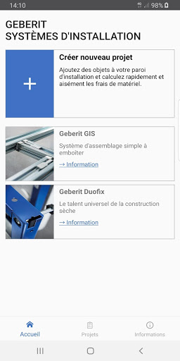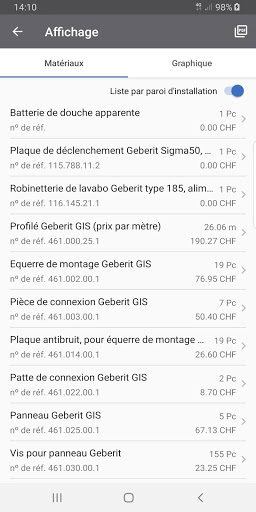 Avec l’appli des systèmes d’installation Geberit, vous planifiez les systèmes de parois en applique GIS et Duofix de manière simple, rapide et efficace. Vous établissez une liste de matériel en quelques étapes et calculez les coûts de matériel de votre projet.