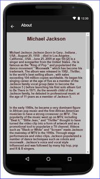 En savoir plus sur Michael Jackson wikipedia, Concerts de tournée, chanteur de médias sociaux Facebook Fanpage, Twitter Fanpage, Chat avec Michael Jackson Fanclub, Mémo pour Notes, Calendrier des événements. Jouer des chansons avec flux en ligne et les paroles sur la musique Michael Jackson.