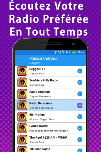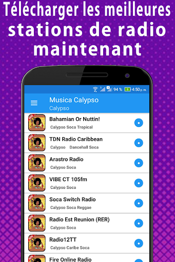 Dans cette application, vous trouverez les meilleures stations de radio avec la nouvelle programmation musicale gratuite calypso, telles que: Radio Calypso FM, FM JAMAICA RADIO, DeLaNuca FM-2, l'émission de radio noir et blanc, l'émission de radio noir et blanc, Rhythm City FM , PONdENDS, Radio eNFX Trinidad - Radio au-delà du bien, Radio Soca Addicts, Commutateur Soca Radio, Radio en ligne Fire, Radio Reggae King, RADIO POWER SLAM, Soca Jamz HD en ligne, LARGERADIO.COM pour téléphones mobiles, Carib101Radio, RADIO.IPIP.CZ : 96MIXX.COM, RADIO EN LIGNE NRG, LARGERADIO.COM pour téléphones mobiles (128 Kbps, Station DHype, MyChutneySoca.com, Radio Flavour HD, Radio Soufriere Hills, VIBE CT 105fm, Radio Amistad, Radio Caribriddims.