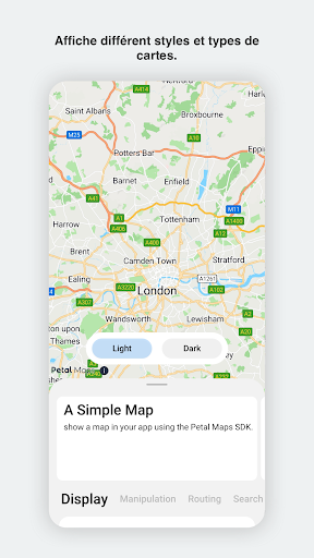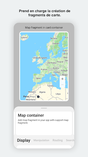 La Petal Maps Platform propose des capacités cartographiques fonctionnant sur différentes plateformes et différents appareils. Actuellement, elle prend en charge Android et prendra très bientôt en charge iOS. La Petal Maps Platform est disponible dans plus de 200 pays et régions autour du globe, et dans plus de 70 langues. Il s'agit d'une plateforme cartographique mondiale ouverte qui inclut plus de 190 millions de points d'intérêt (POI) et plus de 80 millions de kilomètres de routes dans le monde entier. Elle a pour principales fonctions l'affichage de cartes, la recherche de lieux, le positionnement et la planification d'itinéraires. L'affichage de cartes inclut la personnalisation du style de carte, avec plus de 100 éléments disponibles pour personnaliser votre carte. La recherche de lieux inclut la recherche par fuseau horaire, la recherche de lieux à proximité, le géocodage, et la recherche par mot-clé. Le positionnement inclut la localisation fusionnée, le super GNSS, le géorepérage basse énergie, la localisation au niveau de la voie pour la navigation embarquée, et la localisation précise en intérieur. La planification d'itinéraires inclut la recherche d'itinéraires, le calcul de l'heure d'arrivée estimée (ETA), la recherche des conditions de circulation et la navigation. La Petal Maps Platform propose également des services après-vente à l'échelon mondial. Cette démonstration repose sur les capacités ouvertes de la Petal Maps Platform et donne aux développeurs un aperçu des capacités inouïes de la plateforme.