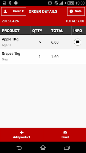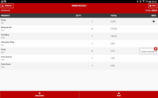 - Optionally add notes to orders and individual comments to products to specify special offers, delivery time, etc..