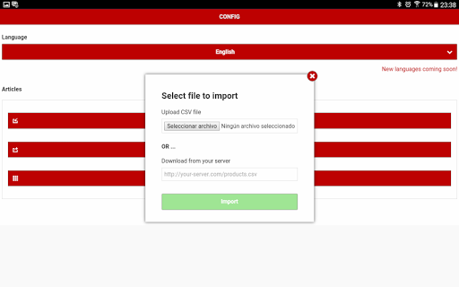 - Import your articles catalogue using an Excel Spreadsheet (CSV) (tutorials available) or create each product manually