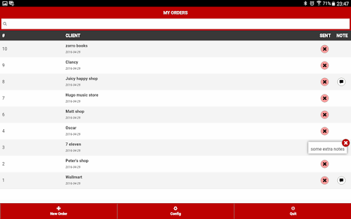 Pocketsales Lite lets you take orders of your products while you are on the road. This information will then be synced to your office via internet when you are back online. This is an ideal solution for enterprises with various commercial visitors and wholesalers who often need to centralize orders to work with their existing accounting software or ERP.