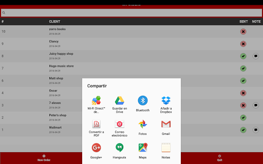 - Send a report of all the taken orders via Email, Dropbox, Whatsapp, etc.. with just one click!