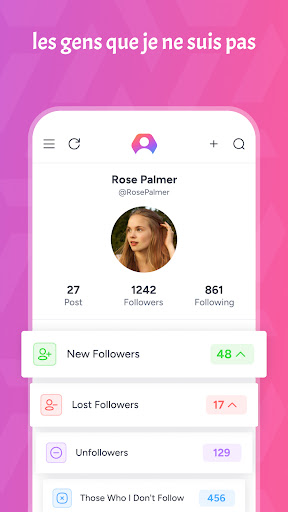 Ceux qui ne suivent pas; Soyez averti instantanément qui ne vous suit pas.