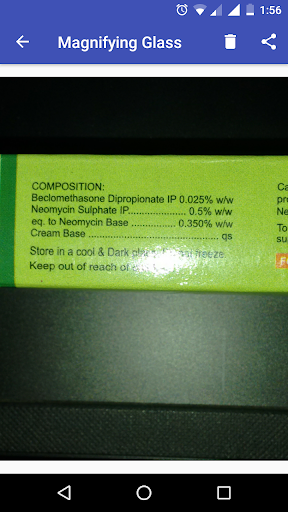 Une application de verre loupe a une option permettant également de capturer l'image / image agrandie. Vous pouvez également afficher l'image agrandie elle-même dans l'application et peut partager avec n'importe quel utilisateur en un clic.
