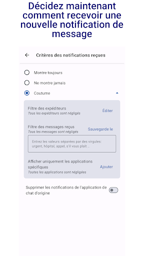 Veuillez noter qu'il n'existe aucun moyen officiel et approuvé de lire les messages de l'application de chat. Ceci est une solution de contournement et peut avoir des limitations en raison de l'application de messagerie spécifique ou même du système d'exploitation Android :
