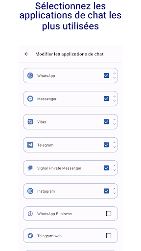Activez ou désactivez NoBlueTick pour différentes applications de chat comme WhatsApp, Viber ou Messenger.