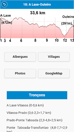 -Cette version gratuite du Chemin Sanabres ne dispose pas d'information sur les auberges et les hôtels (seulement certains exemples sont représentés à chaque étape).Dans la version payante, pour seulement € 2,99, sont inclus plus de 125 auberges et hôtels: Chemin Sanabres PREMIUM