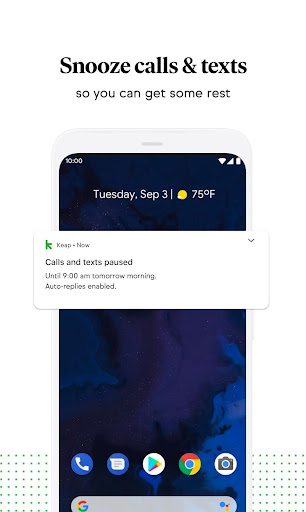 Lets you set your business schedule. Snooze and Nightly-Snooze allow you to pause calls and message notifications while side line auto-replies allow you to stay connected to your leads and clients while you focus on family or work.