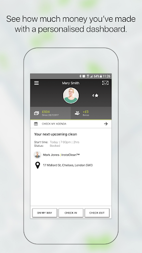 CleanApp offers the latest features to help you to focus on cleaning and making money. The app will let you know who is looking for a cleaner in your area. A tailor made dashboard will show you where is your next cleaning, how much money you made, what’s your rating, bonus and more.
