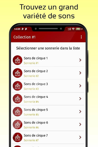 Vous êtes maintenant dans le Play Store disponible pour télécharger notre nouvelle application Sonneries de cirque gratuite gratuite. Téléchargez-le dès maintenant et profitez de tout le contenu. Il a une excellente collection de sonneries, il suffit de choisir votre sonnerie préférée et de la personnaliser sur votre appareil Android pour les utiliser soit comme sonneries, tonalités SMS, alarmes ou notifications.