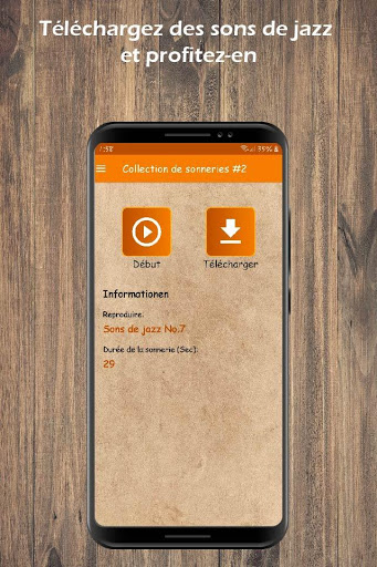 Notre nouvelle application de sonneries jazz est maintenant disponible en téléchargement sur le Play Store, où vous trouverez une variété de sonneries pour personnaliser votre appareil mobile (utilisez-les comme sonneries, SMS, notifications ou sons d'alarme), téléchargez dès maintenant et profitez de son contenu.