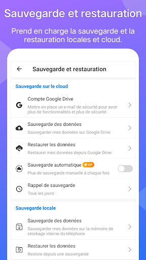 - Prend en charge la sauvegarde et la restauration locales et cloud.