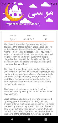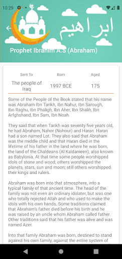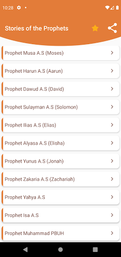 dans cette application, une liste de Des histoires de la vie des prophètes sont présentées. Les histoires sont,