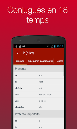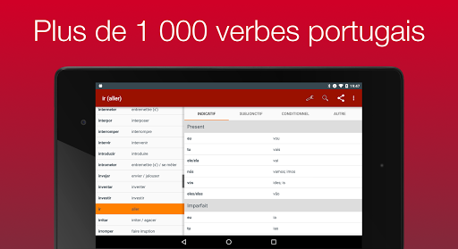 Consultez près de 1000 verbes portugais conjugués aux 20 temps grammaticaux. Grâce à une navigation simple et un moteur de recherche intégré, trouvez le verbe que vous cherchez en l'espace de quelques secondes.