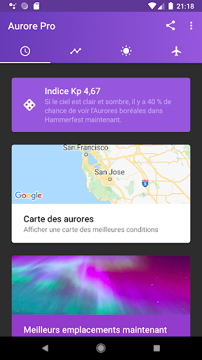 Si vous voulez recevoir les dernières mises à jour sur l’activité géomagnétique et si vous aimez observer les aurores boréales, cette appli est faite pour vous.